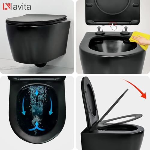 Specificaties: LAVITA Wandtoilet Praia | hangend toilet | toiletdeksel met softclosemechanisme en metalen scharnieren | toiletten zonder spoelrand hangend | toiletpot | 360x480x395 mm |